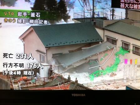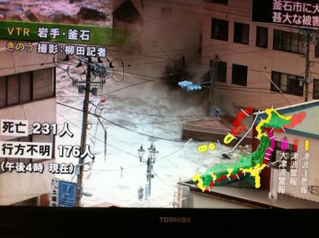 Kamaishi City, Iwate Prefecture around 21:03 minutes, the tsunami struck the town of up to 4 meters.