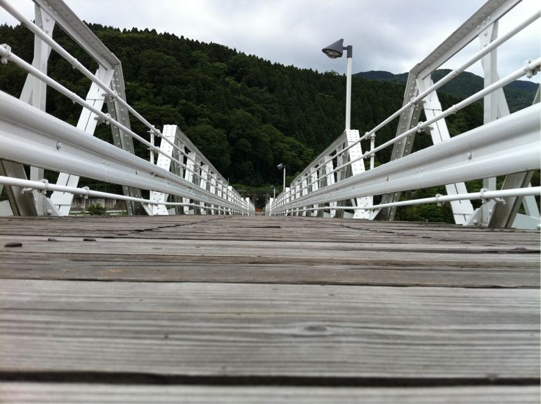 橋はところどころ隙間が空いており、手取川がみえます・・・ちょっと怖い・・・
