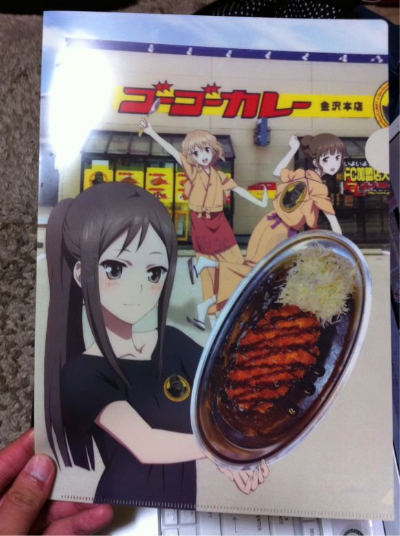 金沢カレーといえば、チャンピオンカレー(チャンカレ)・ジャンカリー・ゴーゴーカレーとかいろいろあるんだけど、その中のゴーゴーカレーでカツの載ったカレーを食べると、花咲くいろはのクリアファイルが貰えるらしいので行ってきた。